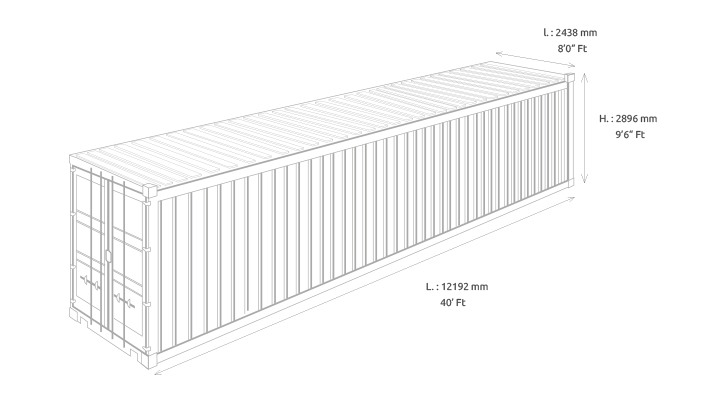 Le container 40 pieds HC est utilisé pour le fret maritime, le stockage et l’aménagement de container. Le conteneur 40 pieds high cube est particulièrement résistant, car l’intégralité de sa structure en acier Corten est composée de parois en tôle ondulée et de longerons sur lesquels réside un plancher en contreplaqué marine en 28 mm.