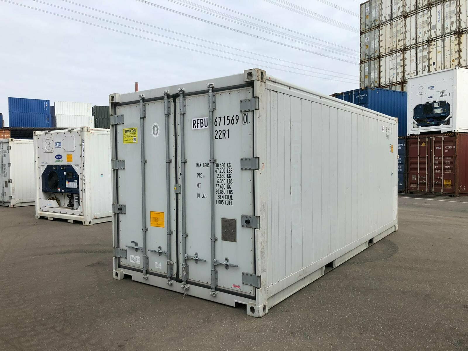 Si vous cherchez un moyen de stocker ou transporter des produits à température contrôlée, le conteneur frigorifique Reefer 20 pieds est la solution qu’il vous faut. En effet, ce conteneur maritime constitué d’un groupe froid, est conçu pour diffuser de l’air réfrigéré à travers le plancher. Cette technologie permet d’obtenir du froid négatif comme du froid positif pouvant aller de -40°C à +30°C quelles que soient les conditions extérieures. Son volume de 33,2 m³ permet de contenir jusqu’à 10 palettes Europe de marchandises et son plancher en RAIL T en Aluminium peut supporter jusqu’à 30 480 kg.